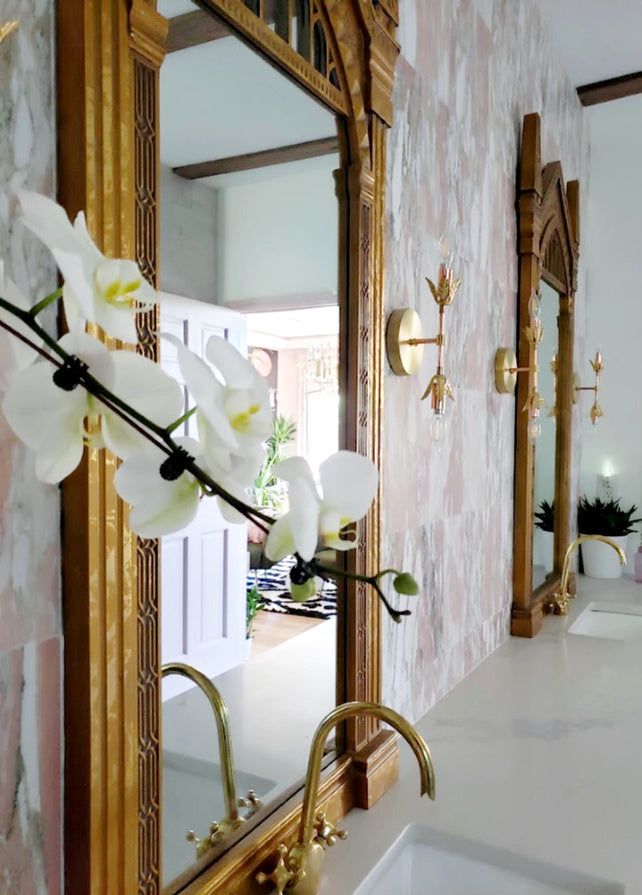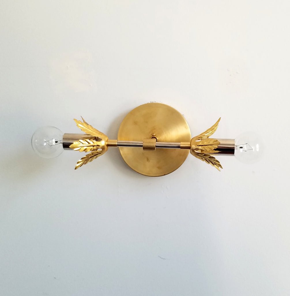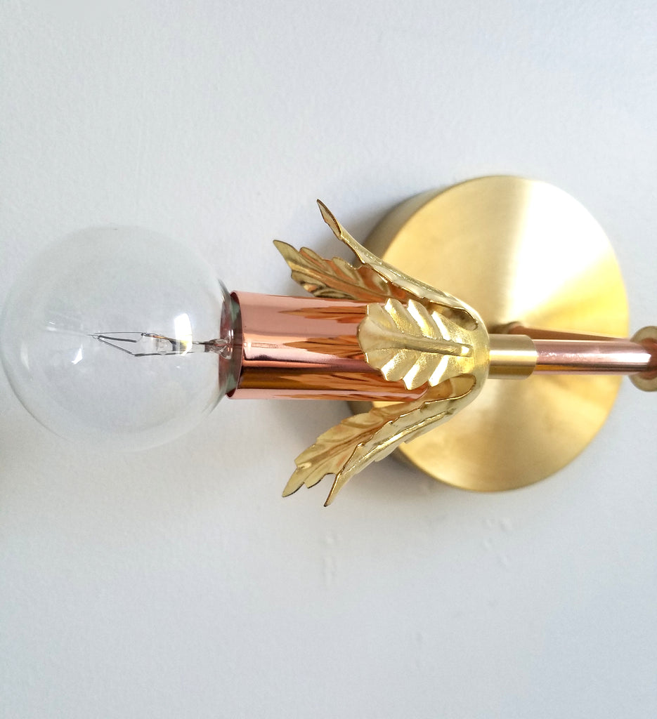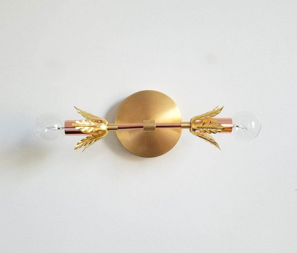 The Terpsichore sconce has a timeless design with its combination of modern polished copper with a romantic gilded fronts.