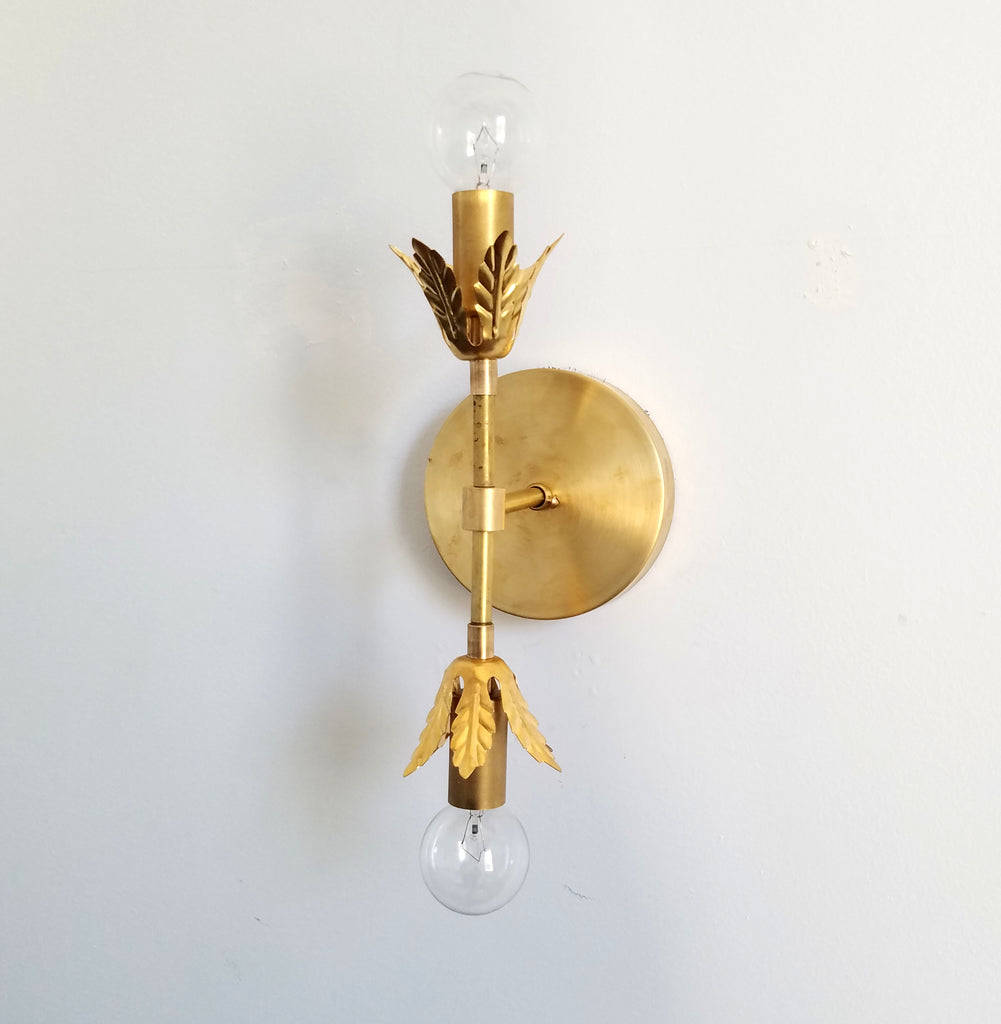 The sconce comes hardwired for professional installation. Includes mounting crossbar. It is constructed using two E12/candelabra base sockets and UL rated wiring. 60 watt max. Bulbs not included.